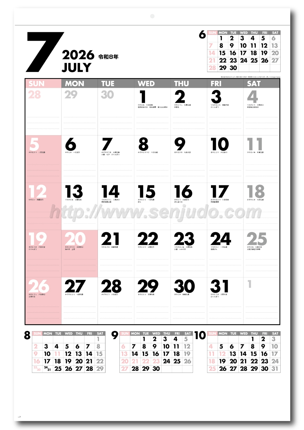 名入れのカレンダーは印刷の性質上、校正確認後のキャンセル、商品到着後の返品などはお受けいたしかねます。