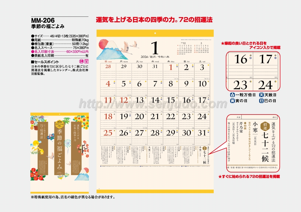名入れのカレンダーは印刷の性質上、校正確認後のキャンセル、商品到着後の返品などはお受けいたしかねます。