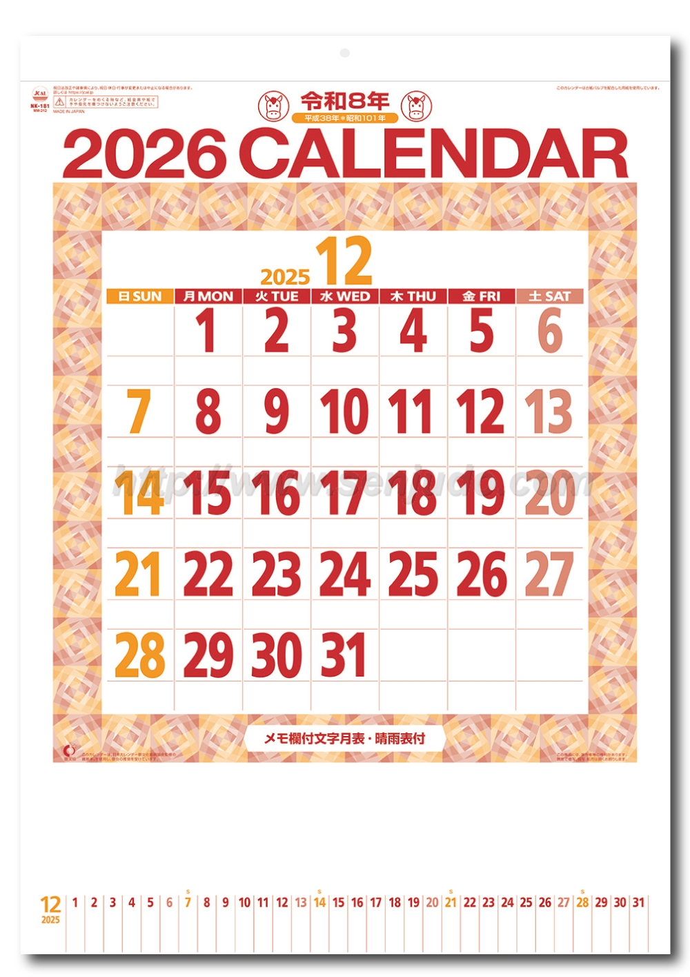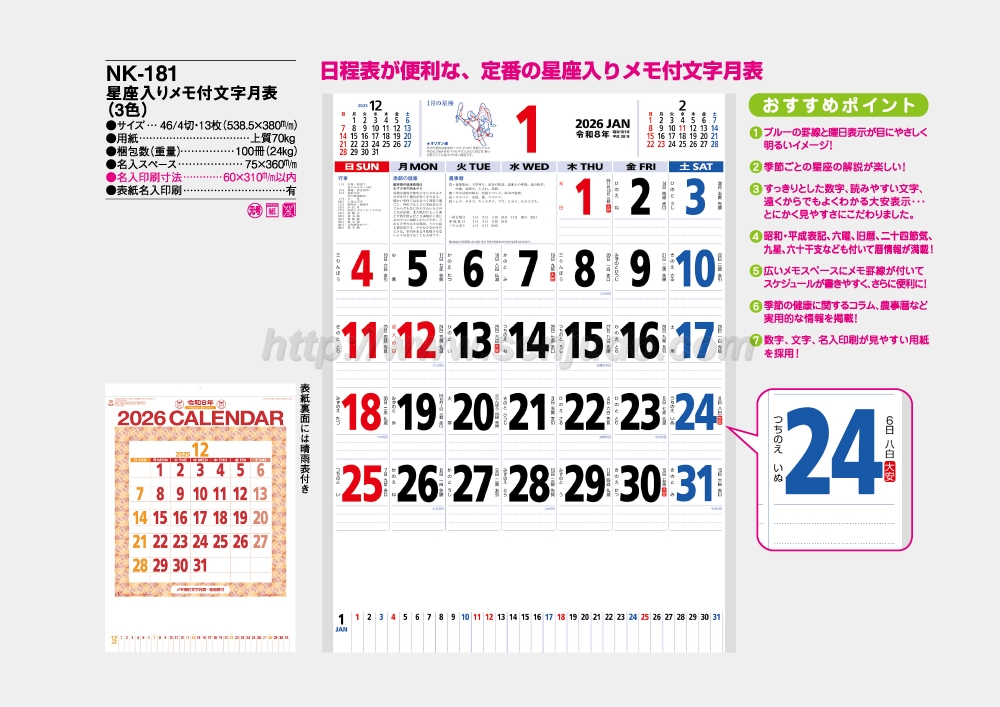 NK-181 星座入りメモ付文字月表(3色)
