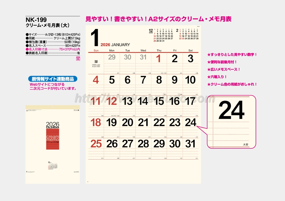 名入れのカレンダーは印刷の性質上、校正確認後のキャンセル、商品到着後の返品などはお受けいたしかねます。